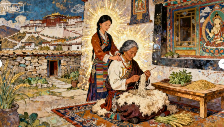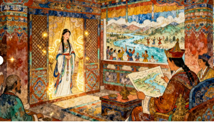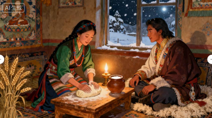 卓玛愣了一下,随即笑着点头。两人一边磨青稞,一边聊天,气氛温馨而美好。赤松德赞看着卓玛的笑脸,突然想起莲花生大士的话 ——“枕边人不是亲人,却是你后半生的贵人”。他心中豁然开朗,原来自己一直在寻找的人,就在眼前。