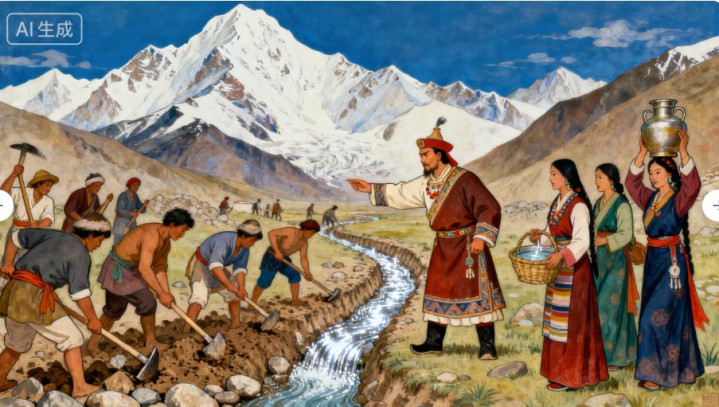 赤松德赞眼前一亮,立刻按照卓玛的建议,组织百姓挖水渠。卓玛则亲自带领妇女们为劳工们做饭、送水,还教大家如何在干旱的土地上种植耐旱的作物。在两人的共同努力下,水渠很快挖成,雪山融水滋润了干涸的农田,百姓们的生活渐渐恢复正常。