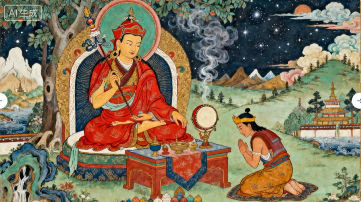 莲花生大士是吐蕃王朝请来的高僧,精通佛法与世间智慧,无数人因他的点拨摆脱困境。赤松德赞听了巴桑的话,心中一动,当天便带着随从,骑着骏马向桑耶寺赶去。