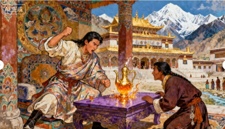 “我偏不娶那吐谷浑贵族的女儿!她连青稞酒的酿造方法都不懂,怎配与我共度一生?” 赤松德赞一拳砸在紫檀木桌上,桌上的鎏金酒壶晃了晃,溅出几滴琥珀色的酒液。