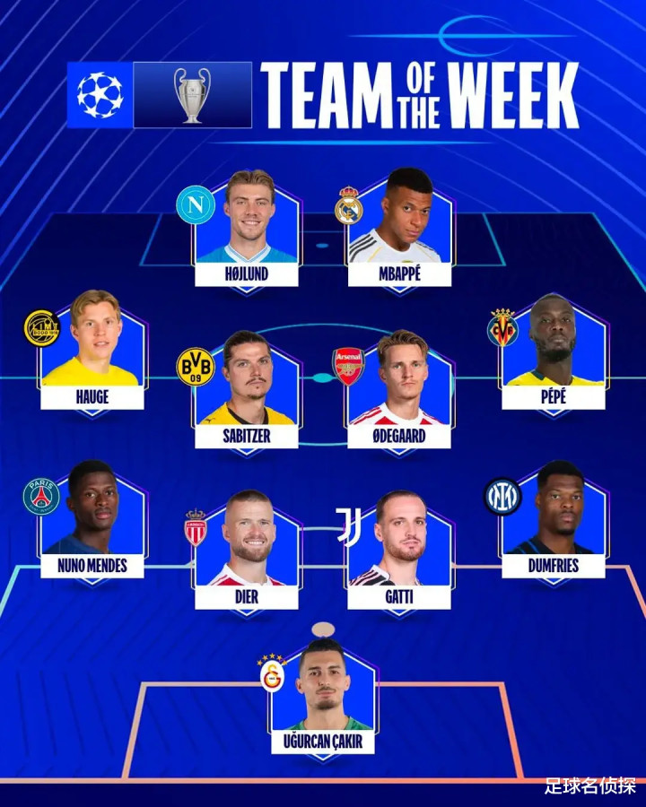 佩佩也入选了,本赛季的佩佩迎来了职业生涯第二春,祝福吧!本轮最佳球员是帽子戏法的姆巴佩。